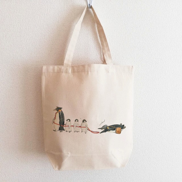 ☆こちらの商品は受注生産です。納期をご確認の上ご注文ください。 コウテイペンギンの親子が電車ごっこをしているイラストで、シンプルなトートバッグを作りました。 子ペンギンを先導する運転手さんやしっかりと列になって歩く子ペンギンたち、転んでしまった車掌さんの可愛らしい様子を描いています。 モノクロのペンギンたちのアクセントになるよう、ネクタイや紐などの小物には差し色の赤を使用しています。 ペンと水彩絵の具を使い、絵本風に仕上げています。 コピペでない手描きのイラストなので、一羽一羽表情が違います。 ペンギンや動物好きさんにいかがでしょうか? アナログ画材ならではの温かみのある雰囲気をお楽しみください。 デザインはキャンバス生地にインクジェットで印刷されています。 折りたたんだり、長期使用で劣化しても、デザイン部分が割れたり剥がれたりしません。 洗濯しても消えることはないので、長期間綺麗な状態でご使用いただけます。 トートバッグの作成は専門の業者へ依頼していますので、しっかりとした作りでプリントもとても綺麗です。 約11cmの広いマチ付きなので、普段持ち歩く物をまとめて収納できます。 12ozの厚手キャンバス生地なので、伸びにくく、破けたり底抜けの心配もありません。 そして、お泊りや旅行などでもっと沢山の荷物を収納したい方のためにLサイズもご用意しています。 オプションよりお好みのサイズをご選択ください。 ※作品画像はMサイズです。Lサイズのデザイン位置は若干異なる場合がございます。 トートバッグはできる限り丁寧に四つ折りにし、水濡れ防止のためOPP袋に入れて梱包します。 【素材】 綿100%(キャンバス地) 厚さ:12oz 漂白を行っていない天然素材のため、生地の色合いに個体差がございます。 同じデザインでも、一つ一つ異なる風合いをお楽しみください。 【サイズ】 ☆Mサイズ 高さ:約37cm 幅:約36cm 奥行:約11cm 内容量:10L 持ち手:約2.5cm x 47cm ☆Lサイズ 高さ:約40cm 幅:約48cm 奥行:約15cm 内容量:19L 持ち手:約2.5cm x 60cm 【納期】 受注生産となりますので、ご注文を頂いてから発送まで3週間程頂きます。 3週間より早く制作できれば、その分早く納品致します。 また、工場で在庫切れになっている場合、3週間以上お待ち頂く可能性がございます。その場合はメッセージにて速やかにご連絡し、お待ち頂けるか確認させて頂いた上で作成に入ります。 ※年末年始・GWなどの長期連休期間の前後は工場の休業に伴い、通常時+1~2週間ほど納期が延びる可能性がございます。予めご了承ください。 受注生産ののためご注文後のキャンセル・サイズの変更は出来かねます。 ご確認頂いた上でご注文の確定をお願いします。 【配送】 クリックポストにて発送します。発送時に商品追跡番号をメッセージにてお知らせします。 ご注文頂いた商品数によっては複数のクリックポストで発送する可能性がございます。 ※缶バッジ・ポストカード等他の商品と同時に注文された場合、Tシャツなど納期が遅いものと同梱発送しますのでご了承ください。 【シール・ステッカー等と同時注文のお客様へ】 トートバッグやトレーナー・Tシャツ(送料込作品)とシール・ステッカー(送料別作品)は可能な場合のみ同梱し発送します。 同梱により送料を頂き過ぎてしまう場合には、差額を作品発送時に切手を同封し返金します。ご了承ください。 【ご注意】 使用されているモニターにより、画像と実物では色味などが違う可能性がございます。 同じTシャツでもデザインのプリント位置に若干の差異がある場合がございます。ご了承ください。 受注生産のためご注文後のキャンセル・サイズの変更は出来かねます。 ご確認頂いた上でご注文の確定をお願いします。 商品に欠陥がある場合を除き、基本的に返品には対応できません。