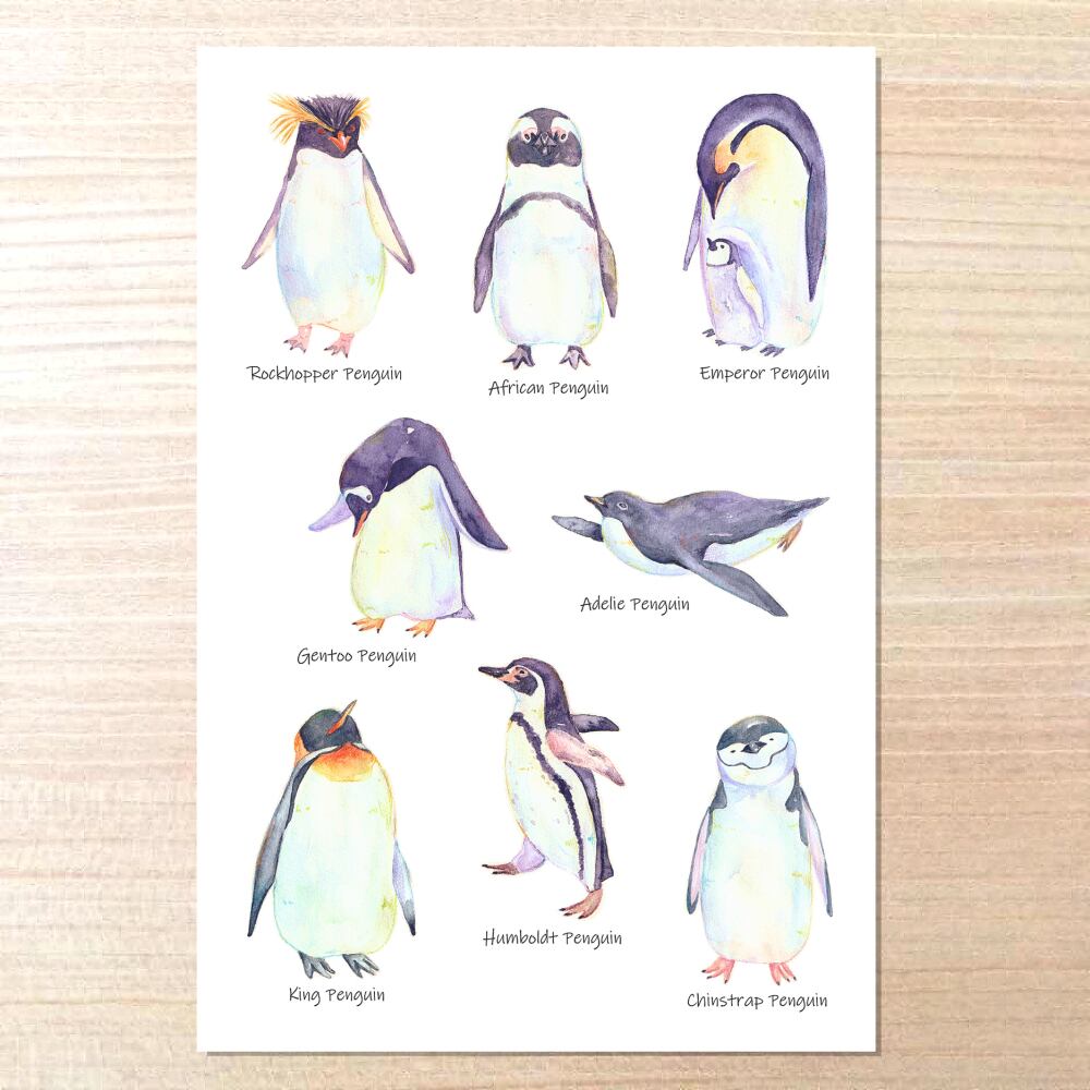 ペンギンの模様や表情など細かく描きこみ、種類ごとの特徴を表現しました。