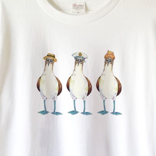 帽子をかぶっておめかししているアオアシカツオドリのTシャツです。