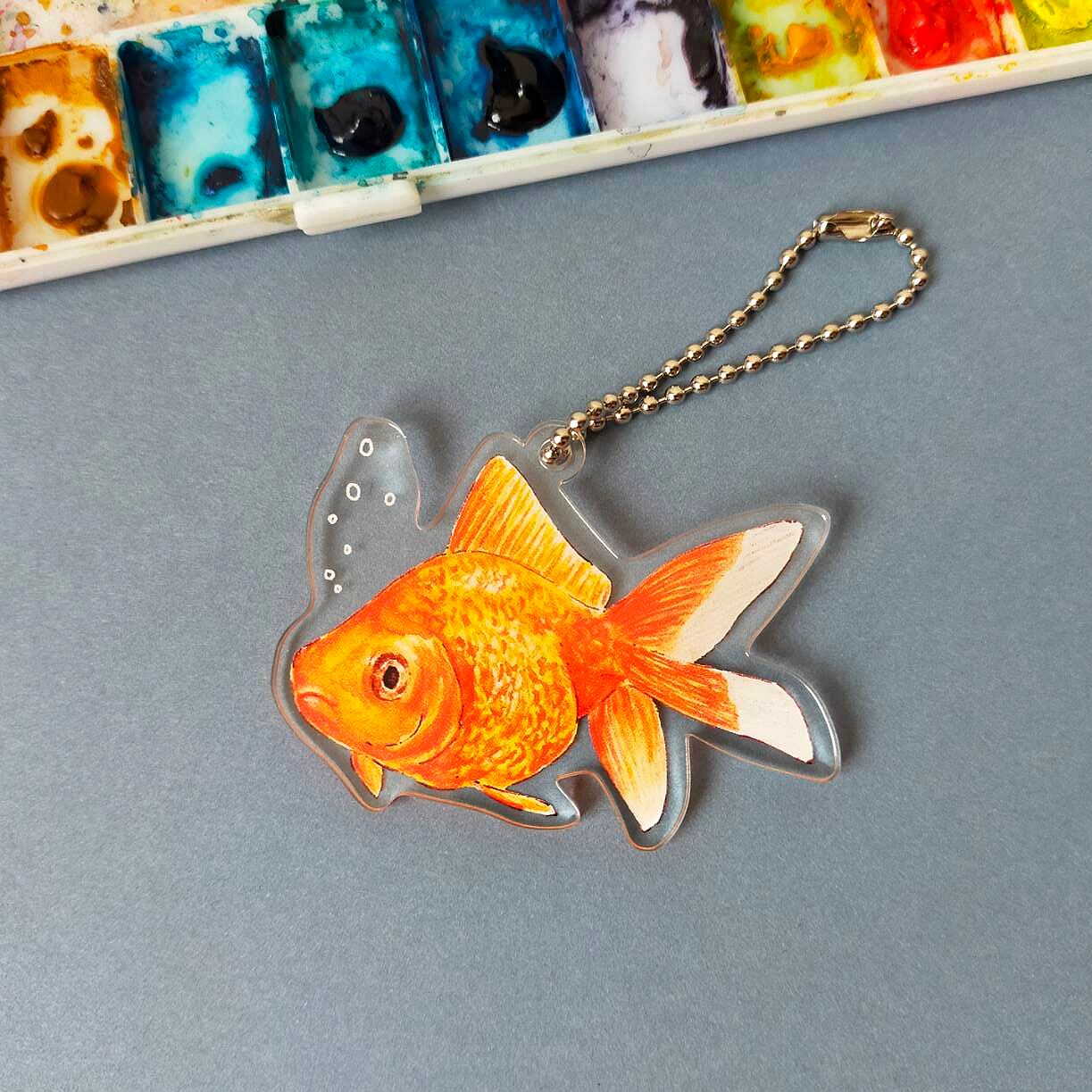 金魚(リュウキン)が優雅に泳いでいる様子のアクリルキーホルダーです。