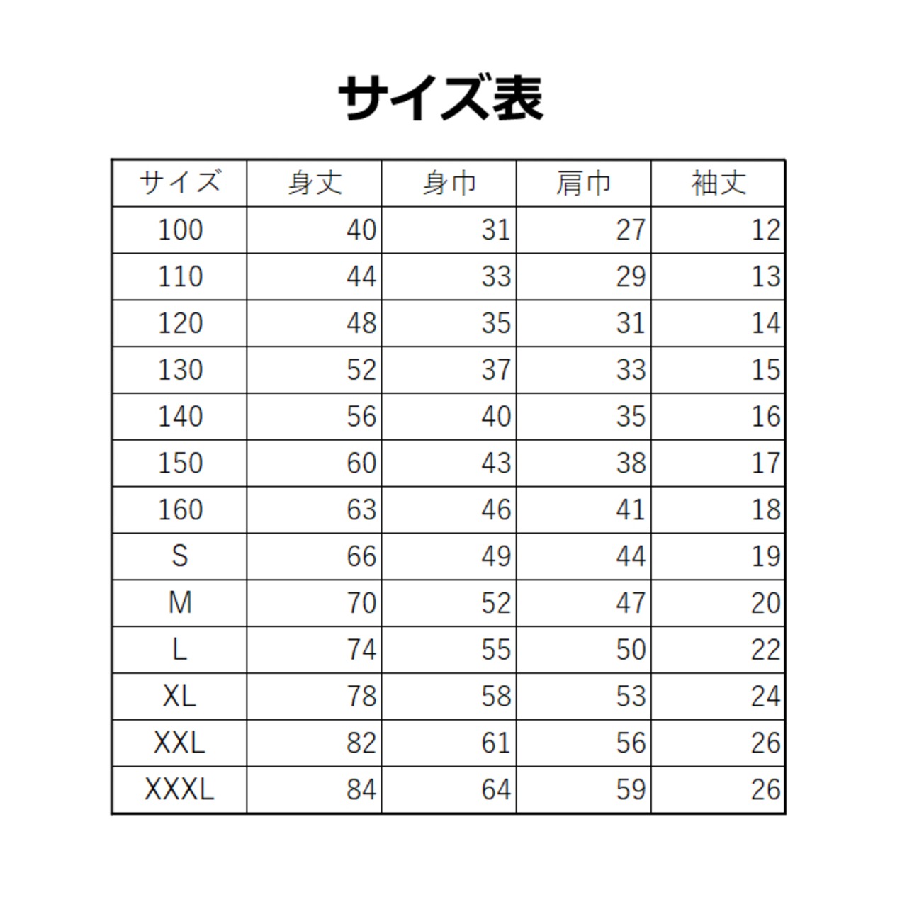 身丈・ 身巾・ 肩巾・ 袖丈の詳細は画像の表よりご確認ください。
