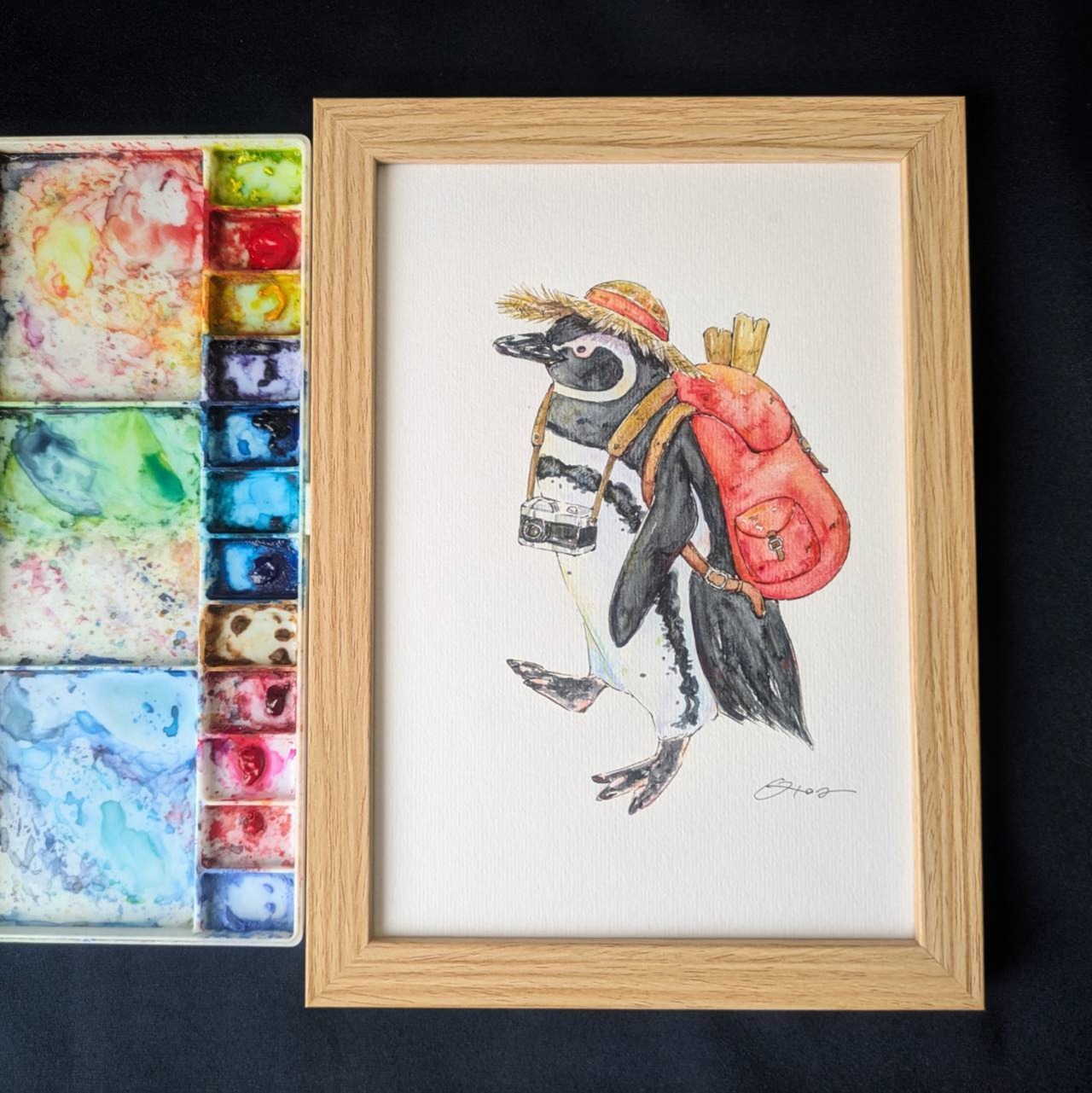 赤色の大きなリュックを背負ったマゼランペンギンは、名前の通り冒険に出かけそうなデザインです。