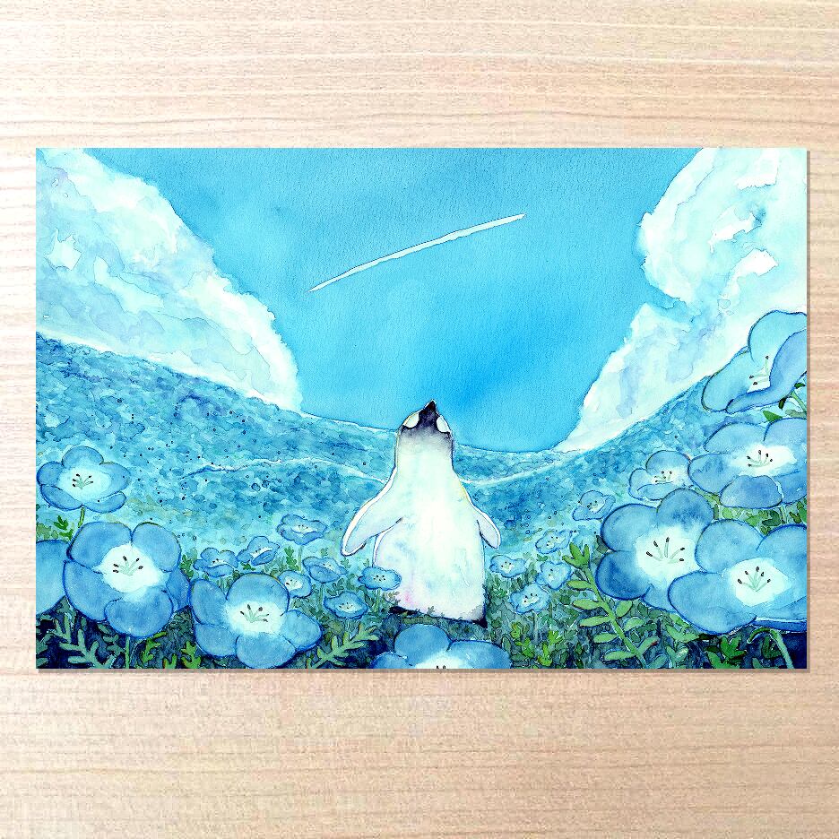 選べるポストカードセット(68.ペンギンとネモフィラ畑)
