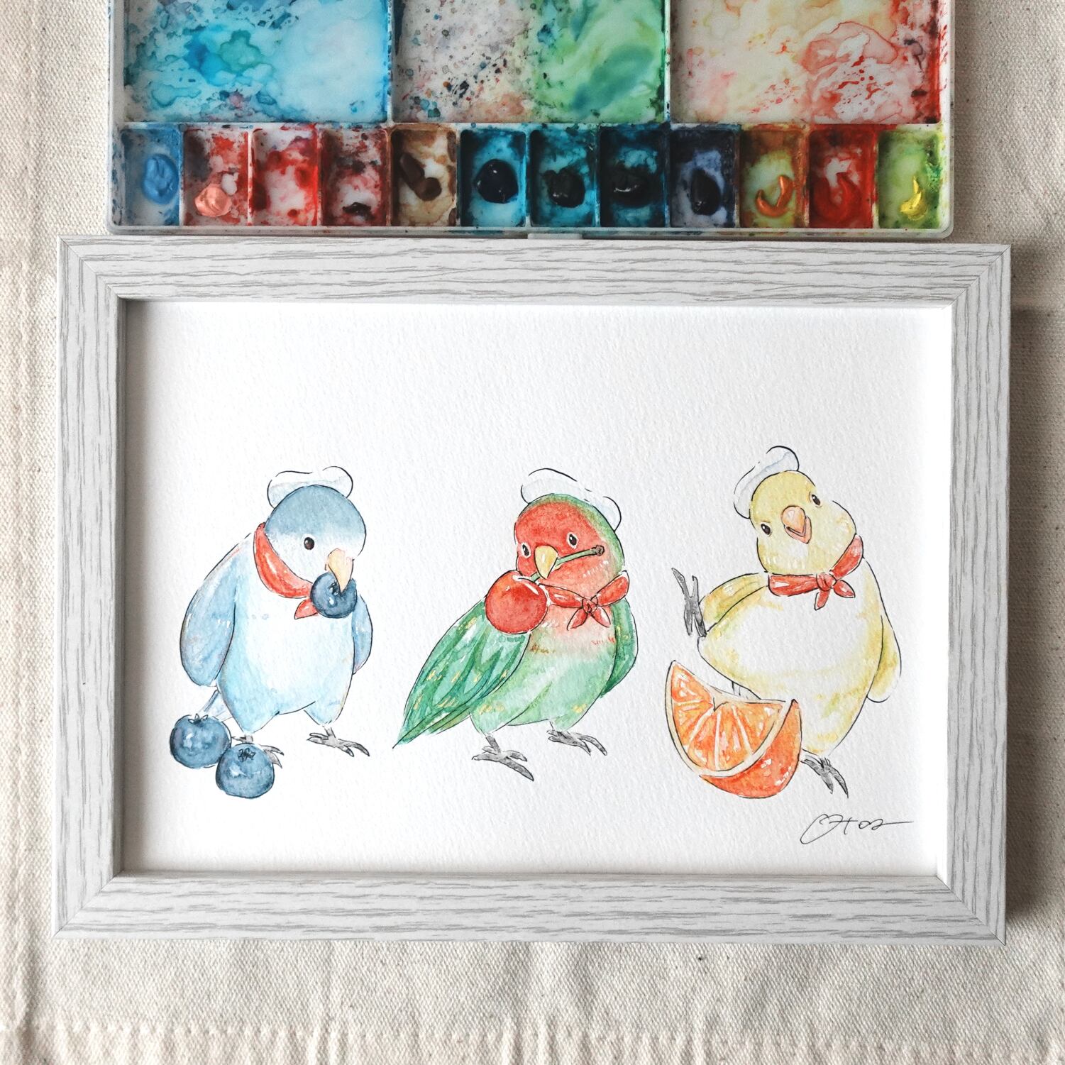 イラストは水彩と色鉛筆を使って描いています。
